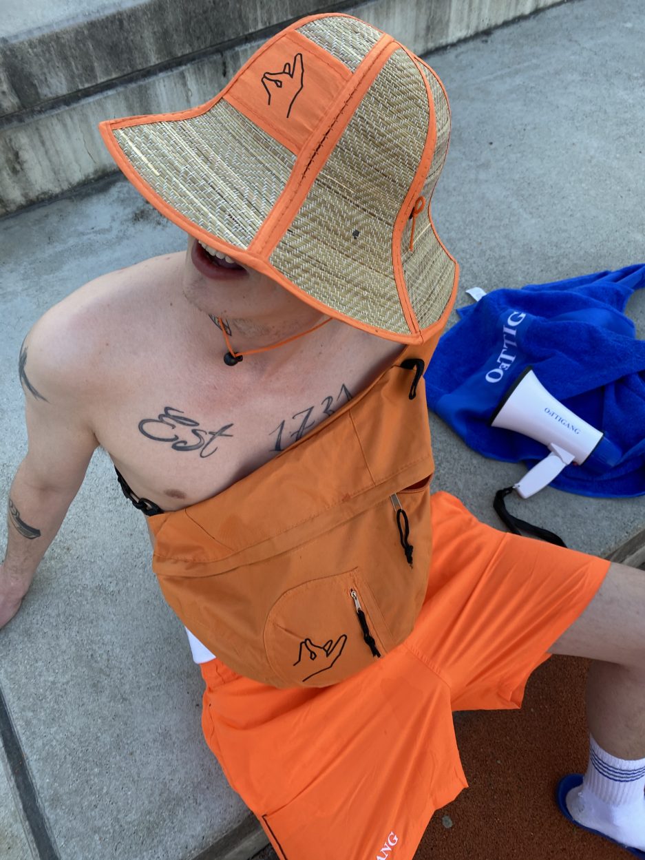 Mit verstellbaren, elastischen Bändern und Fronttasche.